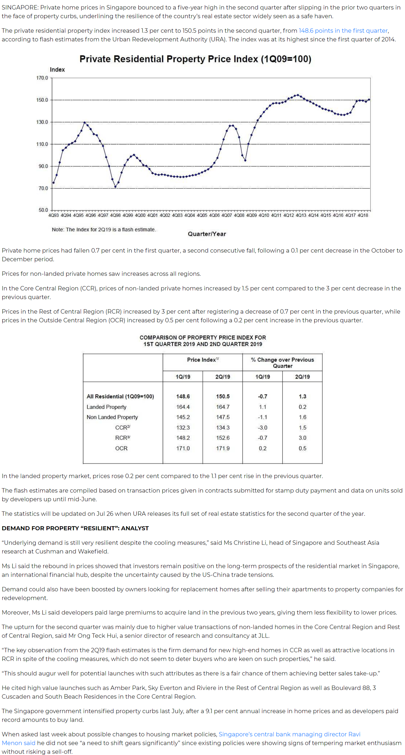 Singapore private home prices unexpectedly rise to 5-year high in Q2